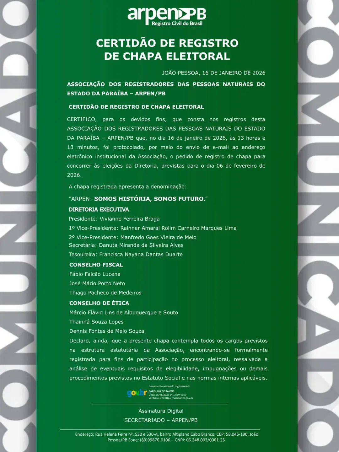 Convidamos você a se associar à Arpen Paraíba!