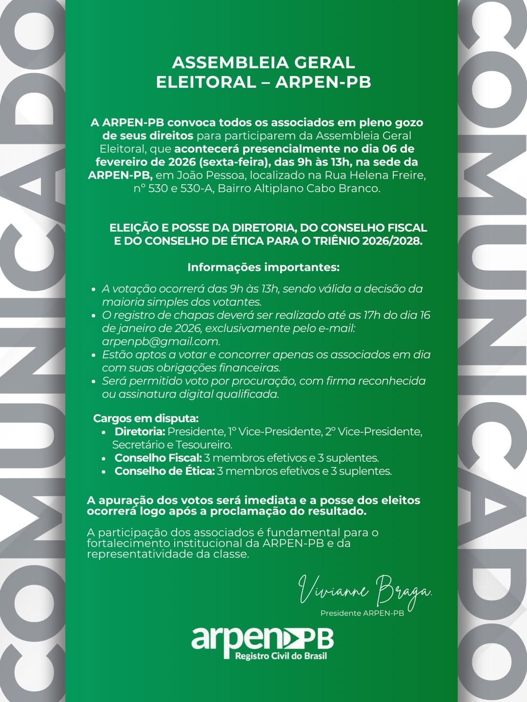 - PRESIDENTE – Vivianne Ferreira Braga Macêdo